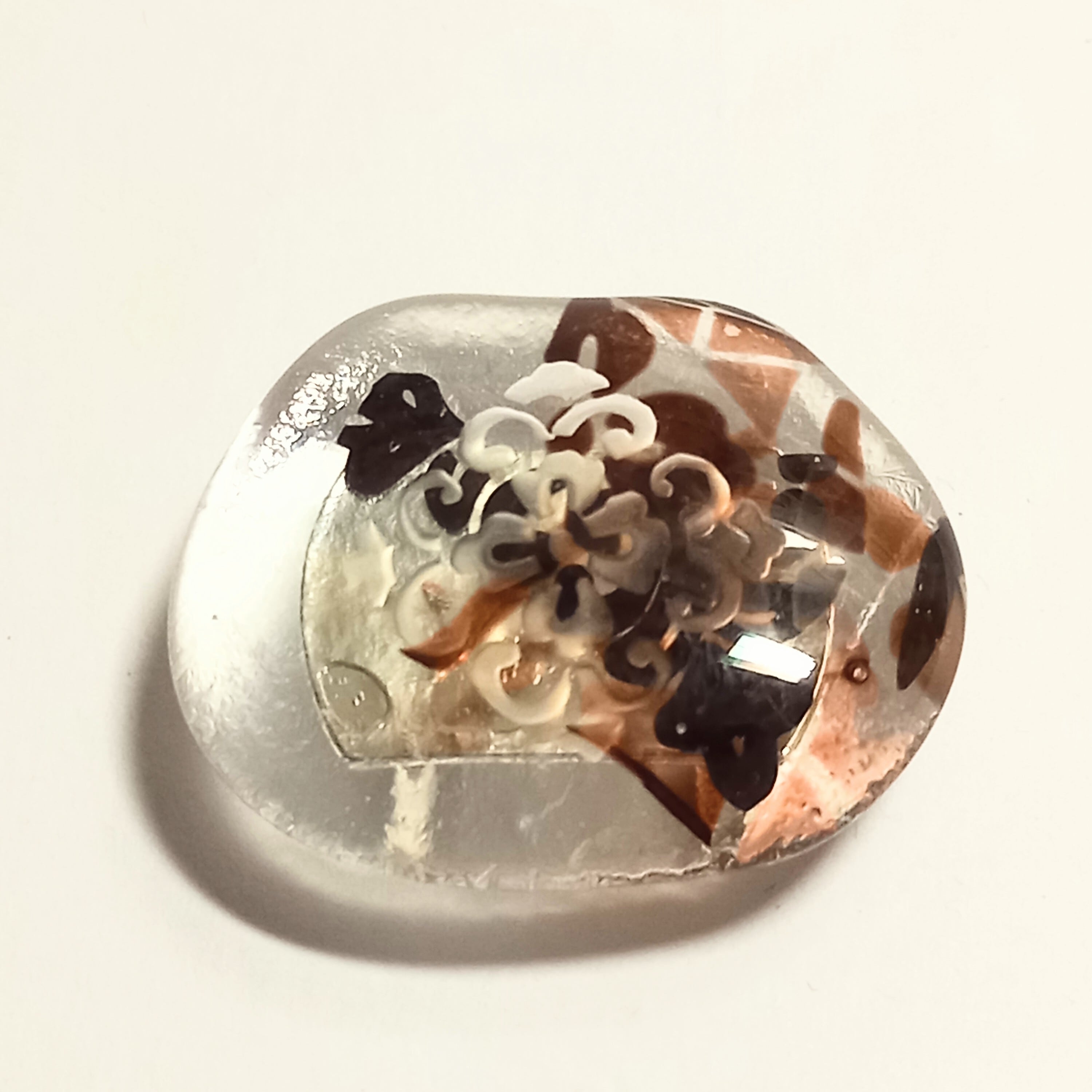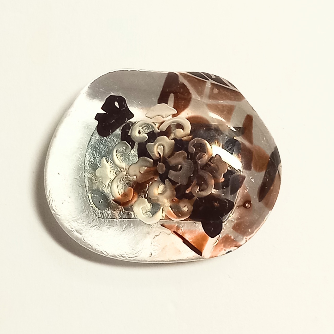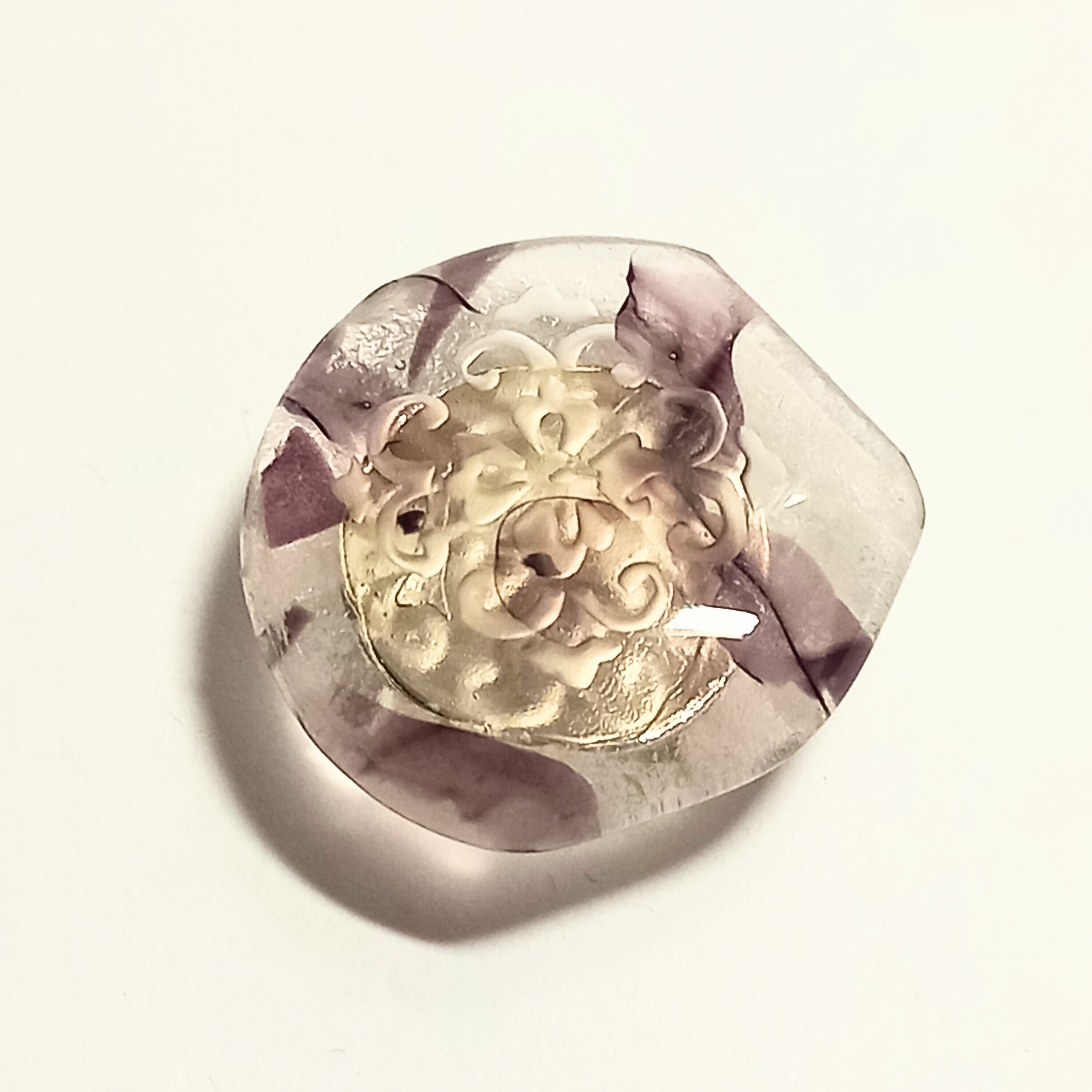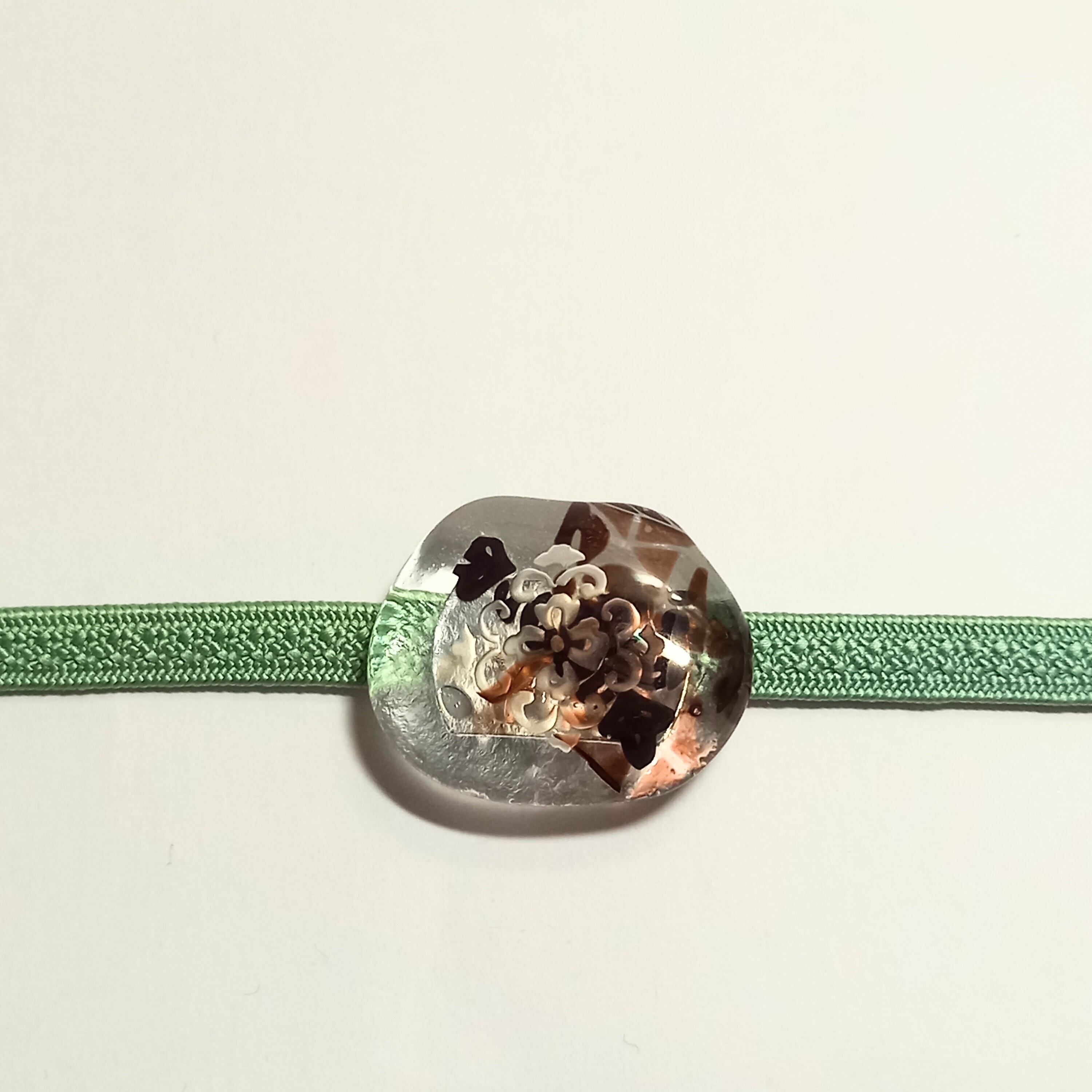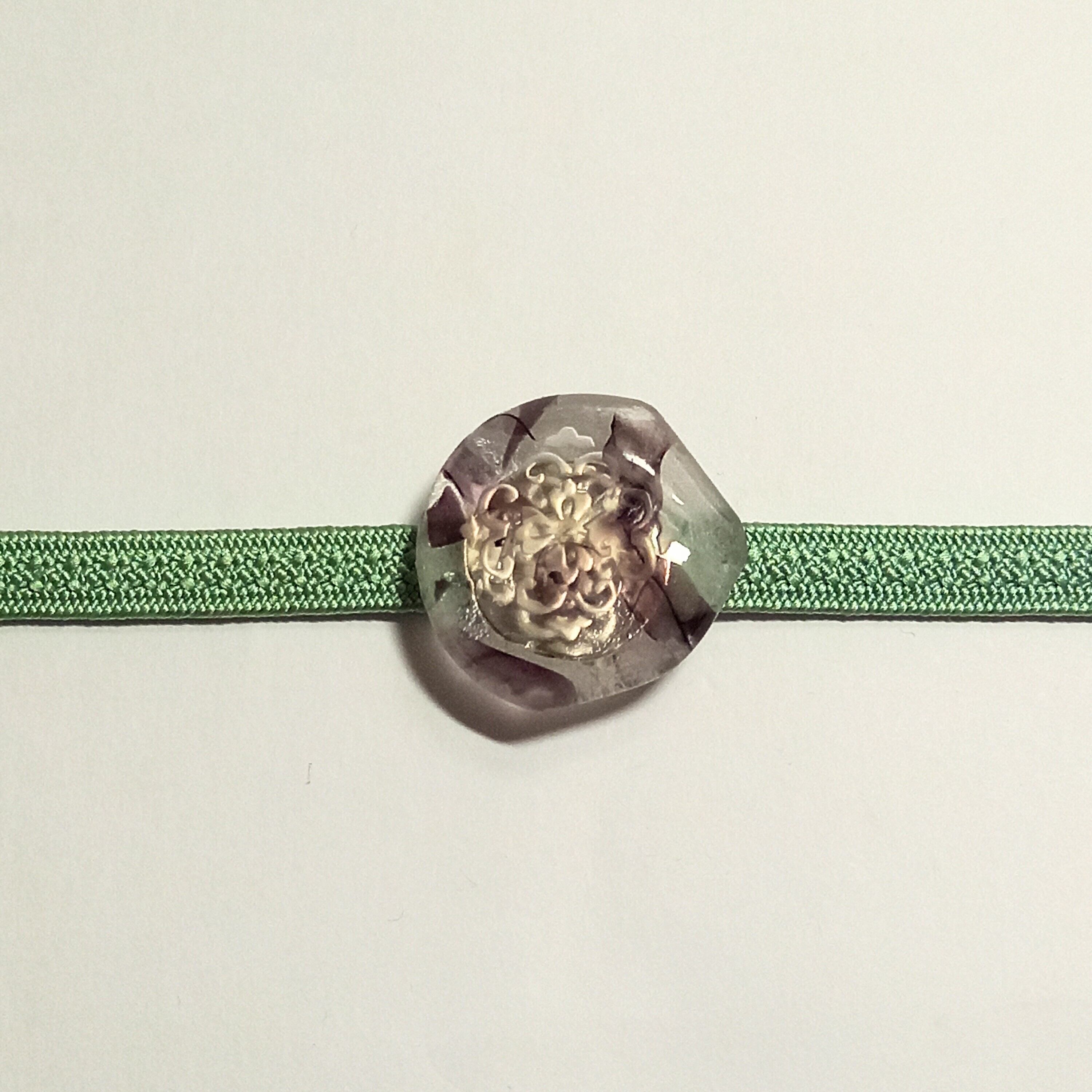 土台のガラスの模様と亀甲唐花の古典柄がニュアンスを出しています。夏の涼しげな雰囲気に合わせるもよし、あえて氷を表して冬に着けるもよしです。