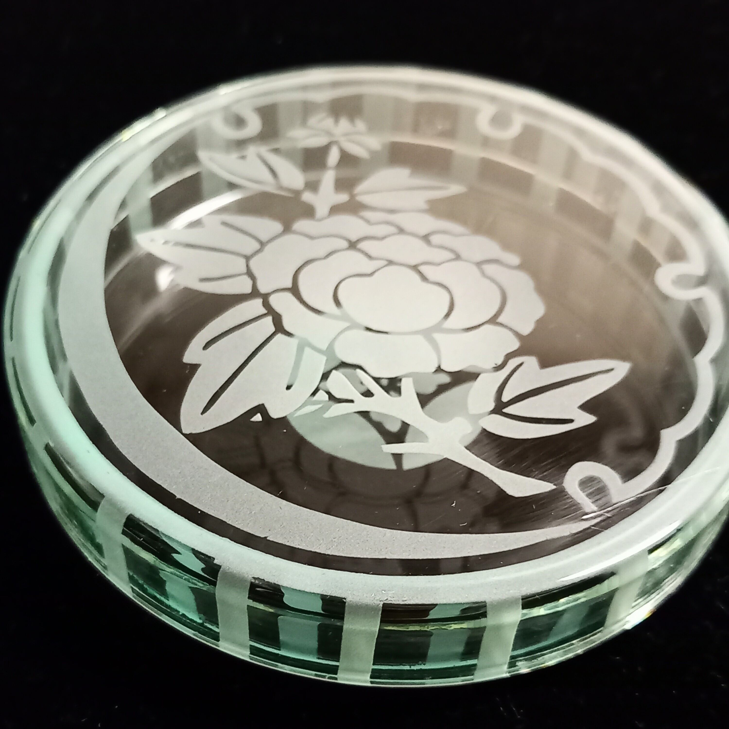 端正な和風の柄で、ガラスの小物入れという、他にはちょっとないお品です。